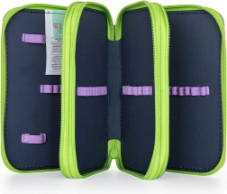Das Mäppchen ist mit 40 Gummischlaufen für Bleistifte, Stifte, Buntstifte und kleines Schulzubehör ausgestattet. Dank des stabilen Reißverschlusses mit großen Zippern lässt es sich leicht öffnen und schließen, und das transparente Fach für den Wochenplan erleichtert die Organisation der Schulwoche.