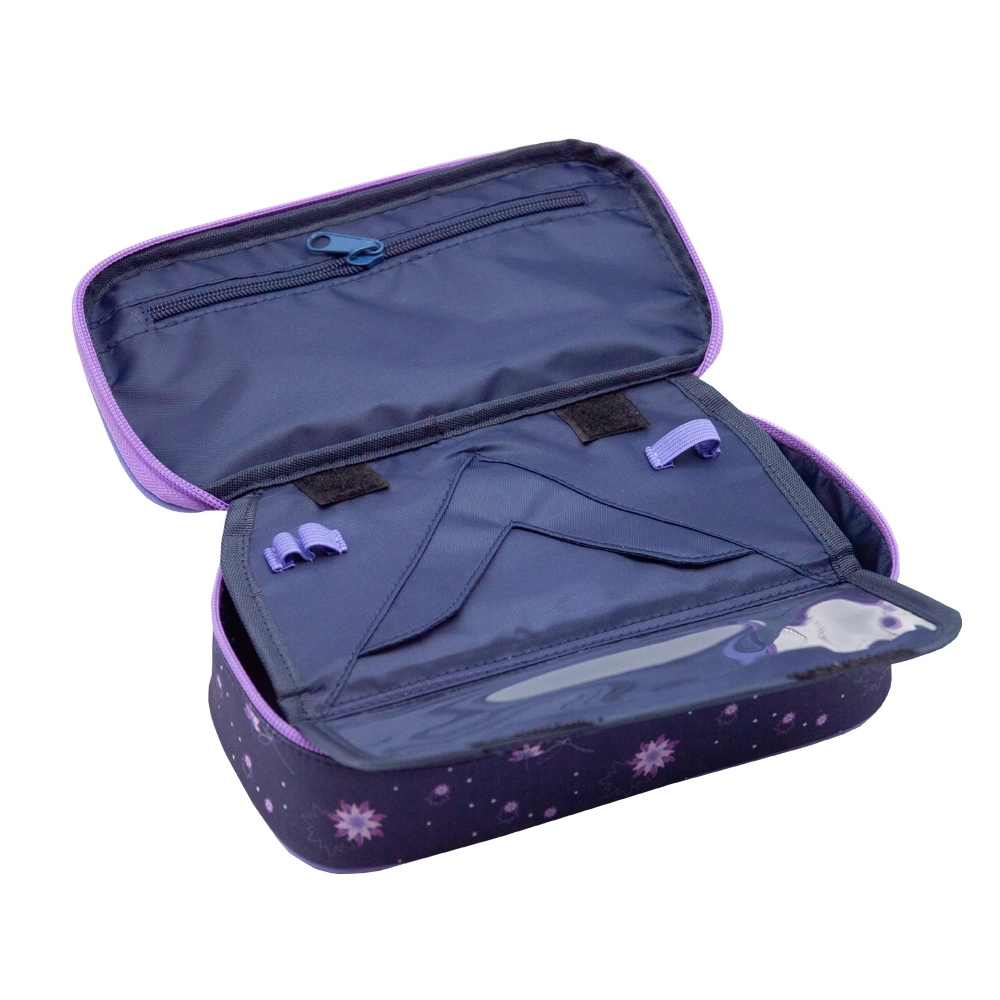 Praktisches Etui für den täglichen Gebrauch in der Schule und bei Freizeitaktivitäten. Dank der durchdachten Innenaufteilung behalten Sie alle Schreibutensilien übersichtlich an einem Ort. Das Blumen-Design verleiht dem Etui einen modernen Look, der perfekt zur Schulausstattung passt.