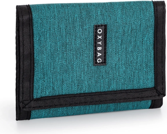 Entdecken Sie die praktische Textilgeldbörse aus der Serie OXY UNICOLOR in elegantem Grün. Diese Klettverschluss-Geldbörse bietet eine außergewöhnliche Anordnung und Komfort dank einer Münztasche, einem Fach für Geldscheine und Platz für Karten.