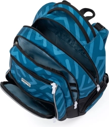 Der Rucksack bietet geräumige Innentaschen für Lehrbücher und Hefte sowie weitere Taschen für persönliche Gegenstände. Elegante schwarze Reißverschlüsse ergänzen das Gesamterscheinungsbild des Rucksacks.