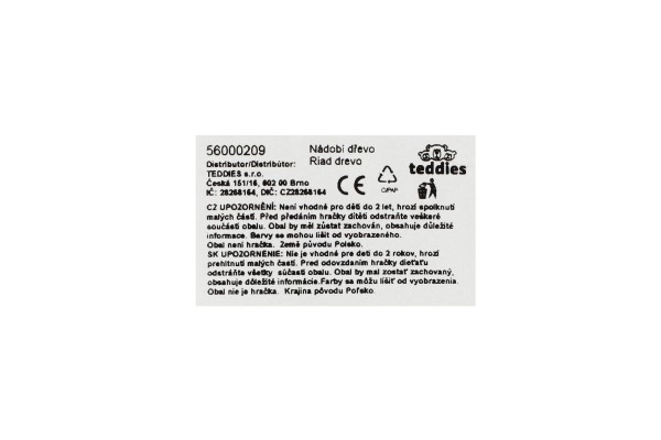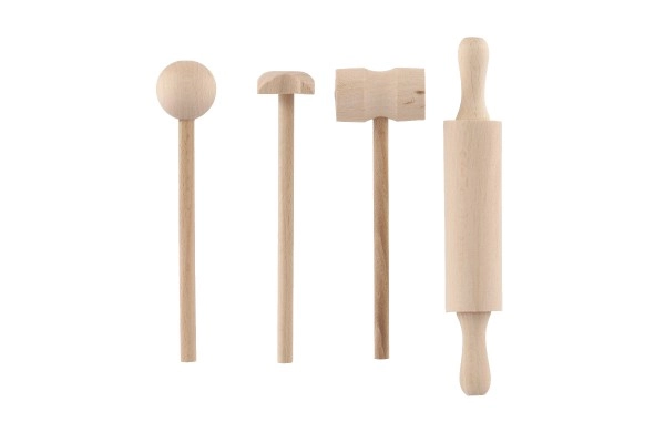 Alle Teile des Sets bestehen aus robustem, glatt geschliffenem Holz. Ohne scharfe Kanten, angenehm in kleinen Kinderhänden und ideal für den täglichen Gebrauch.