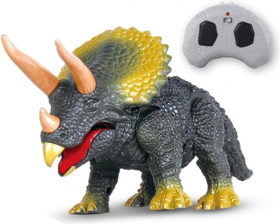 Dieser realistisch gestaltete Triceratops begeistert alle kleinen Paläontologen. Er bewegt sich auf Kommando, erzeugt Dinosauriergeräusche und schafft dank Lichteffekten eine einzigartige Atmosphäre der prähistorischen Welt. Die texturierte Oberfläche und detailreichen Hörner verstärken das Spielerlebnis und regen die Fantasie an.