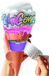 UNICONES ist ein verspielter Kegel voller Freude – packe Schicht für Schicht aus und entdecke, was sich im Inneren verbirgt. Jeder Kegel enthält ein niedliches Einhorn, ein Set an Zubehör zur Personalisierung und eine Portion Slime für kreatives Spielen. Dank der austauschbaren Elemente kann das Kind die Figur dekorieren und die Accessoires nach Lust und Laune neu kombinieren.