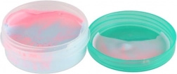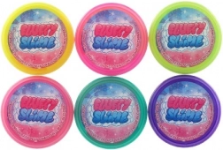 Jedes Stück Schleim ist in einem wiederverschließbaren Plastikbehälter verpackt, der das Material frisch und spielbereit hält.