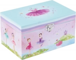 Bewahren Sie Ihren Schmuck stilvoll auf mit dieser wunderschönen Musikschatulle. Öffnen Sie sie und genießen Sie den Anblick der eleganten Ballerina, die sich im Takt der Melodie dreht.