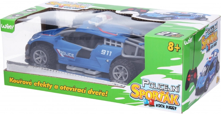 Unterhaltsames Polizei-RC-Auto mit Fernsteuerung, Rauch- und Lichteffekten. Größe 21 cm, Frequenz 27MHz.