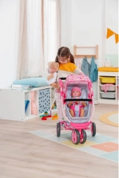 Die umfangreiche Ausstattung inklusive Fläschchen, Schnuller, Windel, Teller, Löffel und weiterem Zubehör fördert Fantasie, Umziehen und Alltagsszenen.