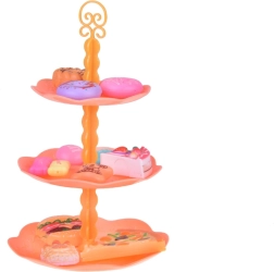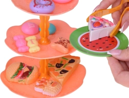 Servieren Sie Spiel-Leckereien auf stabilen dreistöckigen Etageren – Törtchen, Donuts oder Pizza. Ideal für Konditorei-Rollenspiele und zur Förderung der Fantasie.