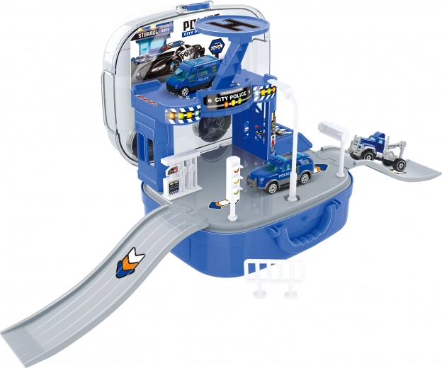 Die Polizeistation im Koffer bringt spannende Unterhaltung für kleine Polizisten und Polizistinnen. Starten Sie zur Rettung mit Autos von 6 cm Größe und genießen Sie stundenlanges Action. Teil des Sets ist auch ein manueller Aufzug, der den Transport zwischen den Etagen erleichtert.