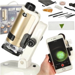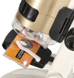 Dieses Mikroskop ist kompakt und leicht tragbar, was es zum idealen Werkzeug für den Einsatz zu Hause oder in der Schule macht.
