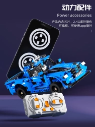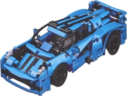 Blaue Sportwagen mit aerodynamischen Formen und detaillierter Ausführung sehen im Regal wie im Einsatz großartig aus. Stylische Aufkleber sind ebenfalls enthalten.