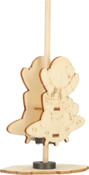 Präzise lasergeschnittene Holzteile greifen ohne Klebstoff und Werkzeug ineinander. Beim Bauen lernen Kinder die Grundlagen von Mechanik, Getriebe und Gleichgewicht.