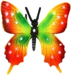 Kräftige Grün-, Rot- und Gelbtöne mit kontrastreicher Flügelzeichnung ahmen tropische Schmetterlinge der Gattung Papilio naturgetreu nach und ziehen in jedem Raum die Aufmerksamkeit auf sich.