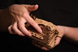 Entdecken Sie das einzigartige Puzzle, das Elemente einer Geschenkbox und eines Escape Rooms kombiniert. Hergestellt aus hochwertigem Birkenholz ist dieses Modell visuell beeindruckend und ideal für Familienspaß oder mit Freunden.