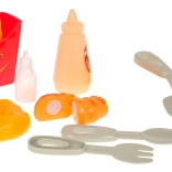 Das Set enthält verschiedene Küchenwerkzeuge und Lebensmittel-Attrappen, die ein abwechslungsreiches interaktives Spiel ermöglichen.