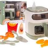 Die Kinder-Heißluftfritteuse ist mit verschiedenen Ton- und Lichteffekten ausgestattet, um echtes Kochen zu simulieren.