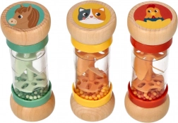 Die Holzenden des Spielzeugs tragen eine schöne Illustration eines Küken, was zu seinem ästhetischen Eindruck beiträgt. Dieses sensorische Spielzeug kann von den Kleinsten zur Entwicklung von motorischen Fähigkeiten und Koordination verwendet werden.