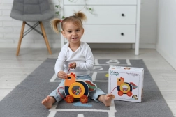 Dieses bunte Holzspielzeug unterstützt die Entwicklung der motorischen Fähigkeiten und die Hand-Fuß-Koordination durch Ziehen.
