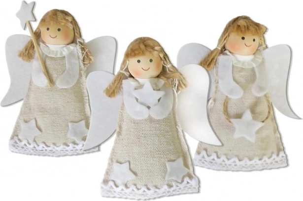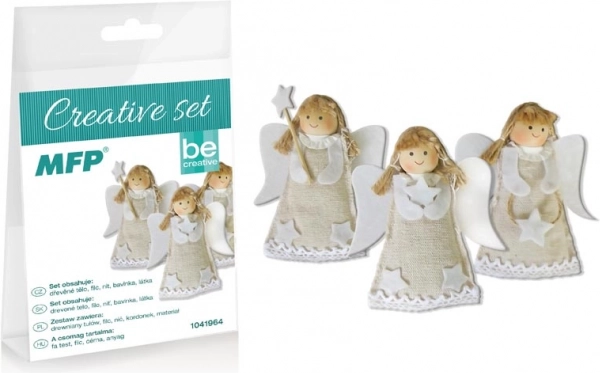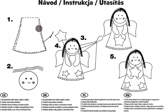 Kreativset – Engel – Kinder trainieren ihre Fingerfertigkeit und entwickeln kreatives Denken. Eine Packung enthält drei Engel. Jedes Stück wird originell und einzigartig sein. Sie können damit einfach Ihre Wohnung dekorieren oder die Kinder damit spielen lassen. PACKUNGSINHALT: – 3 x Filz in Engelsform – Band – Filz-Füllmaterial – Faden – Anleitung ANLEITUNG: 1. Füllen Sie den Filzkörper und nähen Sie ihn zu. 2. Binden Sie die Haare mit einer weißen Schnur zusammen. 3. Kleben Sie die Haare auf den Kopf und diesen anschließend auf den Körper. 4. Kleben Sie den Stern auf den Stab und befestigen Sie ihn dann am Körper. 5. Kleben Sie Flügel, Arme, Kragen und Sterne auf den Körper. WARNUNG: Unter Aufsicht eines Erwachsenen verwenden, Verpackung außerhalb der Reichweite von Kindern aufbewahren, nicht geeignet für Kinder unter 7 Jahren, enthält kleine Teile, Erstickungs- und Verschluckungsgefahr. Lieferung in einer Kartonschachtel mit Aufhänger. Der angegebene Preis gilt für 1 Packung.