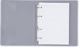 Stilvolles Ringbuch im Format A4 in elegantem Grau mit robusten PVC-Covern und 4-Ring-Mechanik. Enthält 100 linierte Blätter, ideal für Schule, Büro und die Organisation zu Hause.