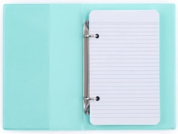 Das stilvolle und funktionale Notizbuch KARIS A6 PVC Pastelini in Grün ist der ideale Begleiter für tägliche Notizen, Planung und Organisation. Dank der 2-Ring-Mechanik lassen sich Blätter leicht hinzufügen oder entnehmen, sodass Sie Ordnung in Ihren Notizen behalten.