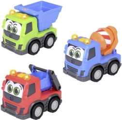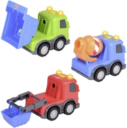 Entdecken Sie das fröhliche Arbeitsauto für die kleinsten Kinder, das ideal für unterhaltsames und imaginäres Spiel ist. Wählen Sie aus drei verschiedenen Varianten: Kipper, Mischer oder Lastwagen.