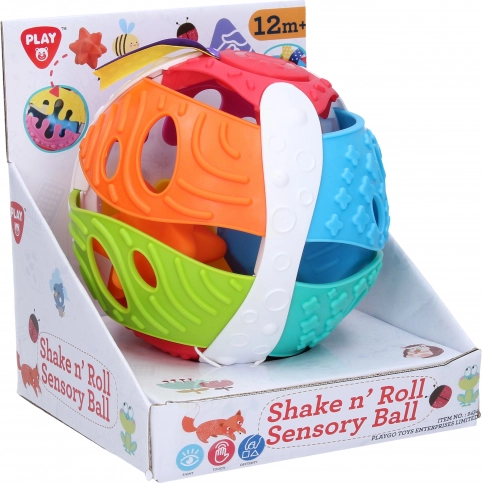 Die spielerische Steckkugel von Playgo mit einem Durchmesser von 15 cm bietet Kindern ab 12 Monaten viel sensorischen Spielspaß. Enthalten sind 2 weiche Bälle, die in die Kugel gesteckt werden, sowie ein Band mit drehbarem Rädchen, das beim Drehen ein klickendes Geräusch erzeugt.