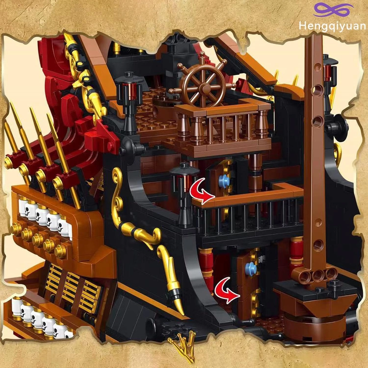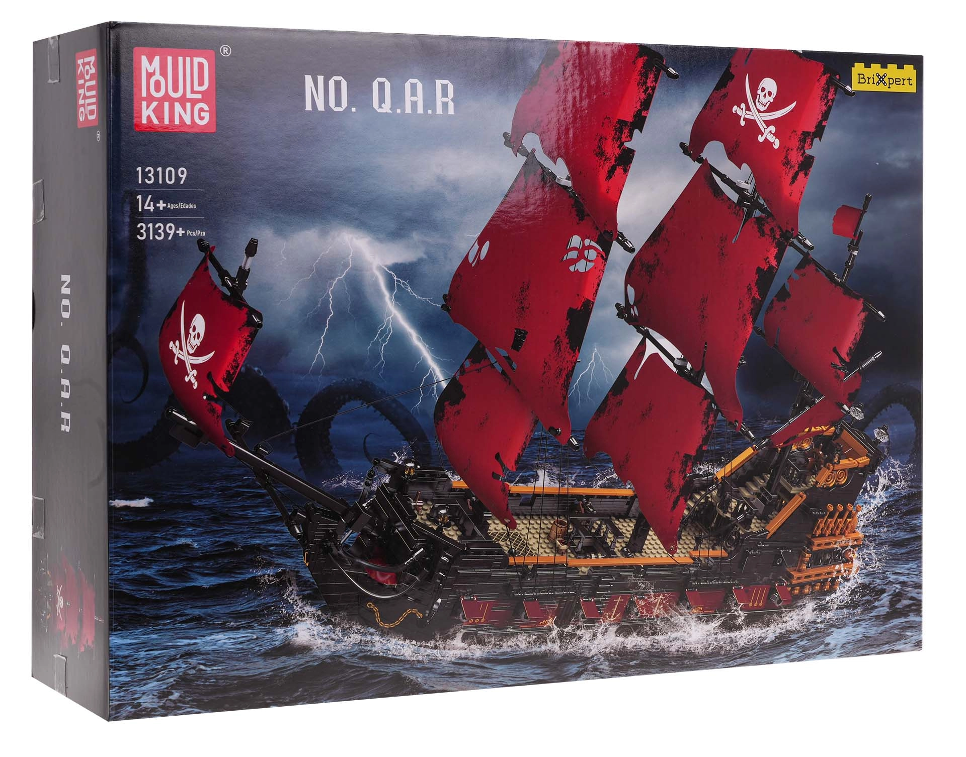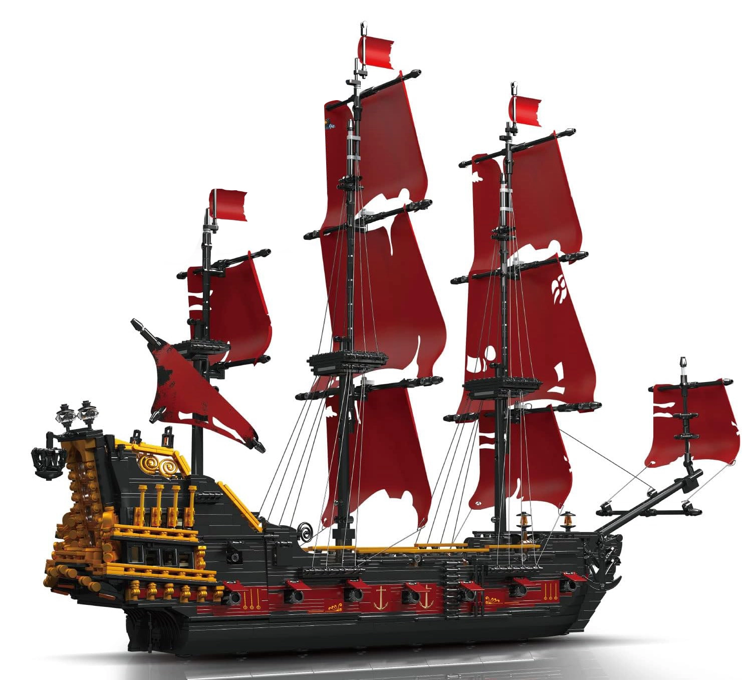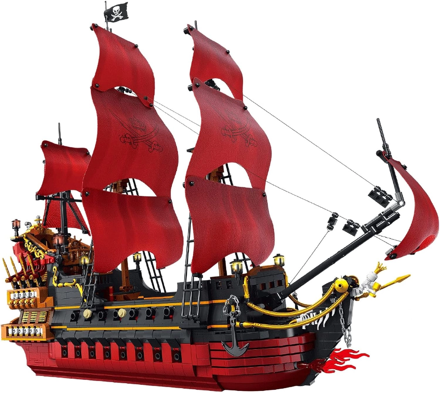 Genießen Sie stundenlangen Bauspaß mit einem realistischen Piratenschiff mit ikonischen roten Segeln und schwarzem Rumpf. Der Bausatz enthält 3139 präzise gefertigte Teile, aus denen Sie ein eindrucksvolles Modell mit zahlreichen Details erschaffen – von den Kanonen an den Seiten bis zur Kapitänskajüte.