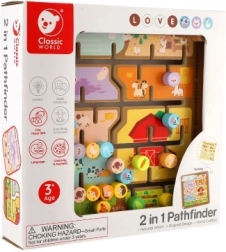 Das beidseitige 2-in-1-Holzlabyrinth von CLASSIC WORLD verbindet Spiel und Lernen: auf der einen Seite ein Bauernhof mit Tieren, auf der anderen Seite das Alphabet mit Tieren. Kinder trainieren Feinmotorik, logisches Denken und Konzentration, während sie die Schiebesteine durch das Labyrinth an die richtigen Stellen führen. Hochwertige Ausführung aus Holz, Maße 30 × 30 cm, geeignet ab 3 Jahren.