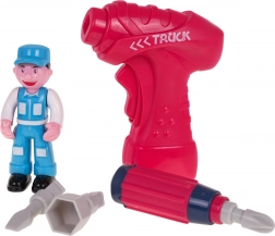 Enthalten sind eine Fahrerfigur, ein Kinderbohrer/Schraubendreher und 3 austauschbare Bits (Schlitz, Kreuz, Sechskant) für realistischen Spielspaß als kleiner Mechaniker.