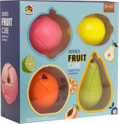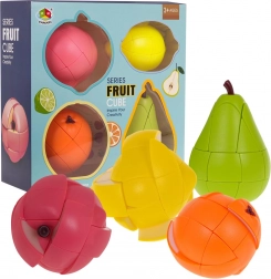 Dieses bunte Set umfasst vier 3D-Knobelspiele in Form beliebter Obstsorten: Apfel, Zitrone, Orange und Birne. Jedes Modell besteht aus miteinander verbundenen Teilen, die sich drehen und neu anordnen lassen. Ziel ist es, die Teile nach dem Vermischen wieder in die Form der ursprünglichen Frucht zu bringen – eine unterhaltsame Herausforderung für Kinder und Erwachsene.