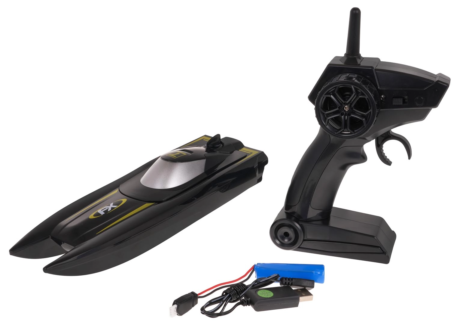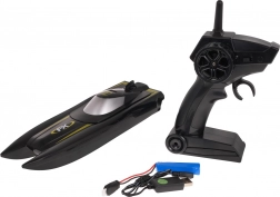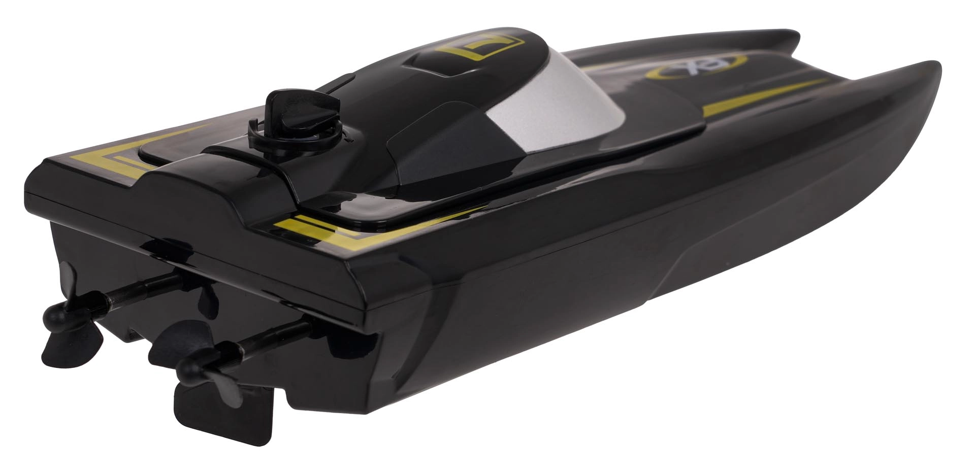 Ferngesteuertes Schnellboot für Kinder ab 14 Jahren und Erwachsene. Es besteht aus Kunststoff, was für eine stabile Konstruktion sorgt. Das Boot lässt sich sehr einfach vorwärts und rückwärts fahren sowie nach rechts und links lenken. Zudem ist das Schnellboot mit einem speziellen Sensor ausgestattet, der das Gerät nur im Wasser einschaltet und nach dem Herausnehmen aus dem Wasser ausschaltet. Das Boot wird von einem 650-mAh-3,7-V-Akku betrieben (im Lieferumfang enthalten), die Fernsteuerung von 2 x AA 1,5 V Batterien (nicht im Lieferumfang enthalten).
