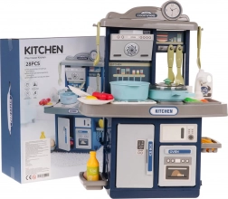Zum Lieferumfang gehört eine breite Palette an Zubehör – ein Topf mit Deckel, eine Pfanne, Geschirr, Besteck und eine farbenfrohe Auswahl an Lebensmitteln, die das sensorische Spiel und die Entwicklung der Feinmotorik fördern.