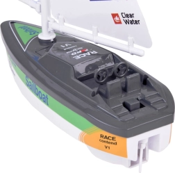 Für Sicherheit sorgt die automatische Motorabschaltung bei seitlicher Neigung, die hilft, ein Unterspülen des Spielzeugs zu verhindern. Das Segel besteht aus Karton – nach Kontakt mit Wasser bitte vorsichtig trocknen, damit Form und Lebensdauer erhalten bleiben.
