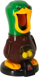 Das Spiel besteht aus robustem Kunststoff und ist dank der weichen Schaumstoffkugeln sicher für den häuslichen Gebrauch. Das Laden ist einfach – die Kugeln werden von vorne in den Lauf eingelegt, der Schuss erfolgt durch Vorschieben des hinteren Teils der Pistole. Die Ente hat kompakte Maße, ist leicht zu transportieren und beschäftigt Kinder über viele Stunden.