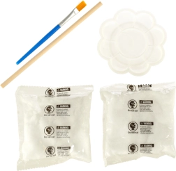 Das Komplettset enthält alle Hilfsmittel – von Messbecher und Palette bis zu Pinsel und Farben. Einfach heißes Wasser hinzufügen und loslegen.