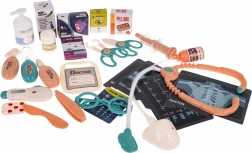 Das Set enthält verschiedene medizinische Werkzeuge wie Stethoskop, Thermometer, Zahnspiegel und mehr.