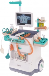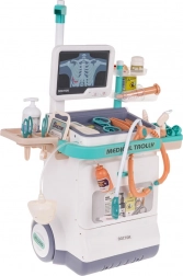 Dieser wunderbare Arztwagen ist leicht und einfach zu handhaben dank großer Räder und praktischem Griff. Ihr Kind kann Arzt, Augenarzt, Kardiologe oder Zahnarzt werden. Das Set enthält ein Panel mit einem Monitor, der Herzschlag- und Alarmgeräusche imitiert, und es können EKG- und Röntgenbilder gewechselt werden. Geeignet für Kinder ab 3 Jahren.