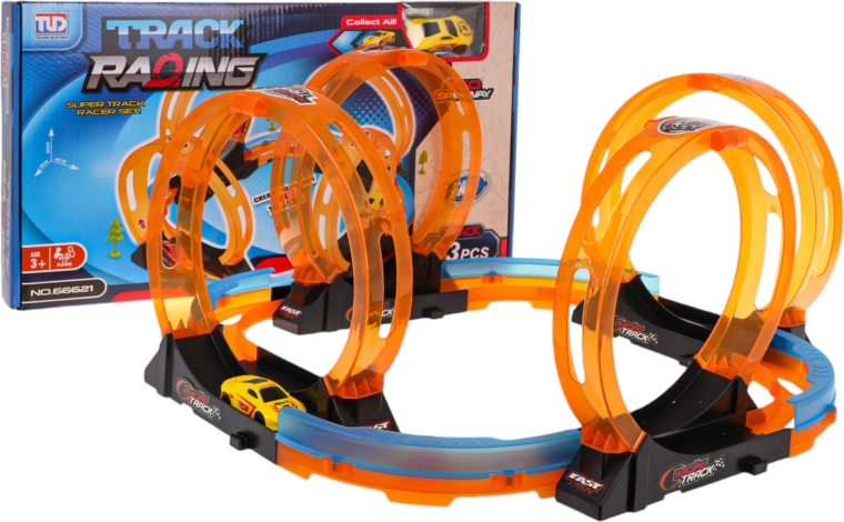Kinder-Rennbahn mit Schleifen besteht aus hochwertigem Kunststoff in leuchtenden Farben, ideal für kleine Rennfahrer. Sie besteht aus 23 Teilen und ist so konzipiert, dass sie stundenlange Unterhaltung und kreatives Spiel bietet. Vertreiben Sie Langeweile und genießen Sie die Action mit Schleifen, die 360-Grad-Drehungen des Autos ermöglichen. Angetrieben durch einen Rückzieh-Mechanismus fährt das Auto nach dem Zurückziehen mit voller Geschwindigkeit nach vorne.