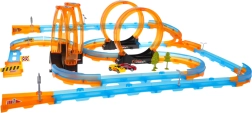 Große Rennstrecke für Kinder mit 59 Teilen ist perfekt für kleine Rennfahrer. Die lebendigen Farben und der robuste Kunststoff sorgen für stundenlangen Spaß, während Kinder mit Fahrzeugen mit Rückziehantrieb Geschwindigkeit und Stunts ausprobieren.
