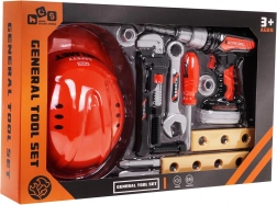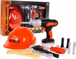 Kinderset mit Werkzeug, Helm und interaktiver Bohrmaschine