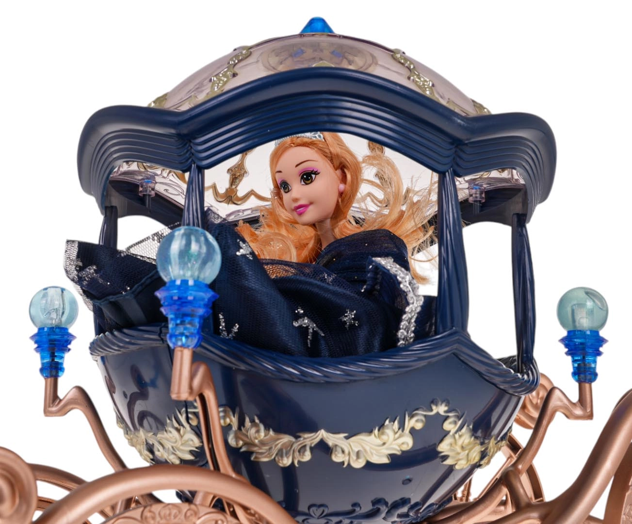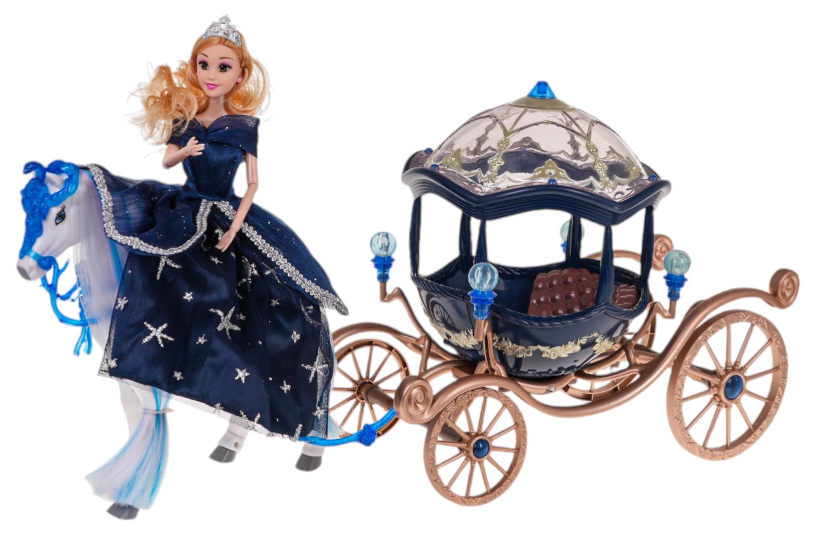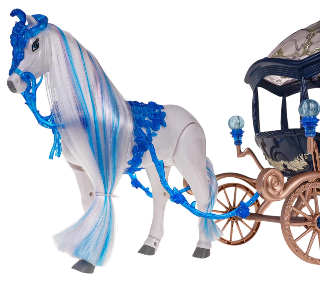 Puppen-, Pferde- und Kutschenset mit Licht- und Soundeffekten für Kinder ab 3 Jahren. Das Set ermöglicht es, in eine zauberhafte Welt einzutauchen. Das Pferd bewegt sich vorwärts und macht Geräusche wie ein echtes Tier. Die Kutsche ist mit blinkenden Lichtern (blau und rot) beleuchtet. Die Puppe hat bewegliche Arme und Beine, ein schönes Ballkleid und langes Haar. Das Pferd wird mit 3 AA 1,5 V Batterien betrieben (nicht im Lieferumfang enthalten). Die Kutsche funktioniert mit 3 x AG13 Batterien (im Set enthalten). .. Funktionsumfang des Sets: . - geeignet für Kinder ab 3 Jahren, .- das Pferd läuft und gibt Geräusche von sich, .- die Mähne des Pferdes kann gekämmt und geflochten werden, .- das Haar der Puppe kann gekämmt werden, .- die Kutsche hat Lichter, .- die Puppe hat bewegliche Arme, Beine und einen beweglichen Kopf, .- das Set ermöglicht eine Reise in die Welt der Magie. . |