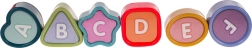 Auf der einen Seite ein Dach-Xylophon mit Schlägel, auf der anderen Seite ein Sortierer mit 6 Formen zur Förderung der Motorik und Logik. Inklusive ausziehbarem Griff zum Tragen.