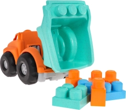 Der Kipper und die Bausteine bestehen aus robustem Bioplastik. Das Material ist umweltfreundlich und hat keine scharfen Kanten – ideal für kleine Kinder.