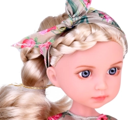 Diese bezaubernde Puppe ist die perfekte Wahl für jede kleine Modefreundin. Mit langen, blonden Haaren, zu einem eleganten Zopf geflochten, trägt sie ein elegantes Blumenkleid mit Rüschen, ergänzt durch einen Blumen-Haarreif und weiße Schühchen. Der Gesamtstil ist einfach umwerfend!