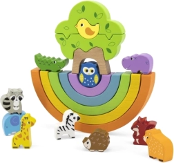 Dieses Montessori-Set verbindet die Freude am Stapeln des Regenbogens mit fantasievollem Spiel mit niedlichen Tieren. Kinder können farbige Bögen schichten, Tunnel und Brücken bauen, Lebensräume für die Tiere gestalten und entdecken, wie Balancieren und Stabilität funktionieren. Das Spiel fördert auf natürliche Weise Feinmotorik, sensorische Wahrnehmung und Kreativität.