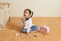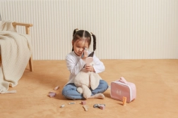 Gönnen Sie der kleinen Visagistin ihre eigene Beauty-Ecke. Das stylische Textiltäschchen bewahrt alle hölzernen „Kosmetik“-Accessoires zusammen auf und ermöglicht, sie überallhin mitzunehmen. Das Spiel fördert Feinmotorik, Vorstellungskraft und soziale Kompetenzen beim Rollenspiel.
