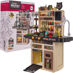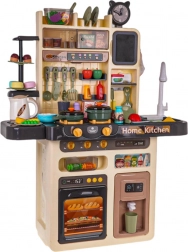 Diese geräumige Kinderküche verwandelt das Zimmer in eine kleine Gourmetwerkstatt. Kinder genießen realistische Details wie beleuchtete Kochfelder mit Brat- und Kochgeräuschen, Dampf aus einem der Brenner und einen Wasserhahn mit fließendem Wasser. Öffnen Sie den Backofen, lagern Sie Lebensmittel im Kühlschrank mit Wasserspender, drehen Sie an den Bedienknöpfen und schalten Sie die Dunstabzugshaube mit Musikpanel ein.