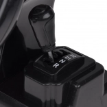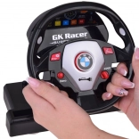 Das Lenkrad ist mit den Tasten START, STOP, DEMO und MUSIC ausgestattet und macht das Spiel noch abwechslungsreicher. Der DEMO-Modus mit farbiger Beleuchtung zeigt die Vorwärts- und Rückwärtsfahrt, während der Hebel die Wahl von D1 (schnelle Fahrt), D2 (sehr schnelle Fahrt), N (Neutral) und R (Rückwärtsfahrt) ermöglicht. Das Auto verfügt über eine einstellbare Spur für bessere Stabilität.