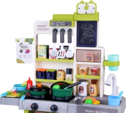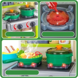 Interaktive Spielküche mit Lichteffekten, Geräuschen, Dampf- und Wasserfunktion sowie fließendem Wasser aus dem Wasserhahn ist das ideale Spielzeug für kleine Köchinnen und Köche und bietet realistische Küchenerlebnisse.
